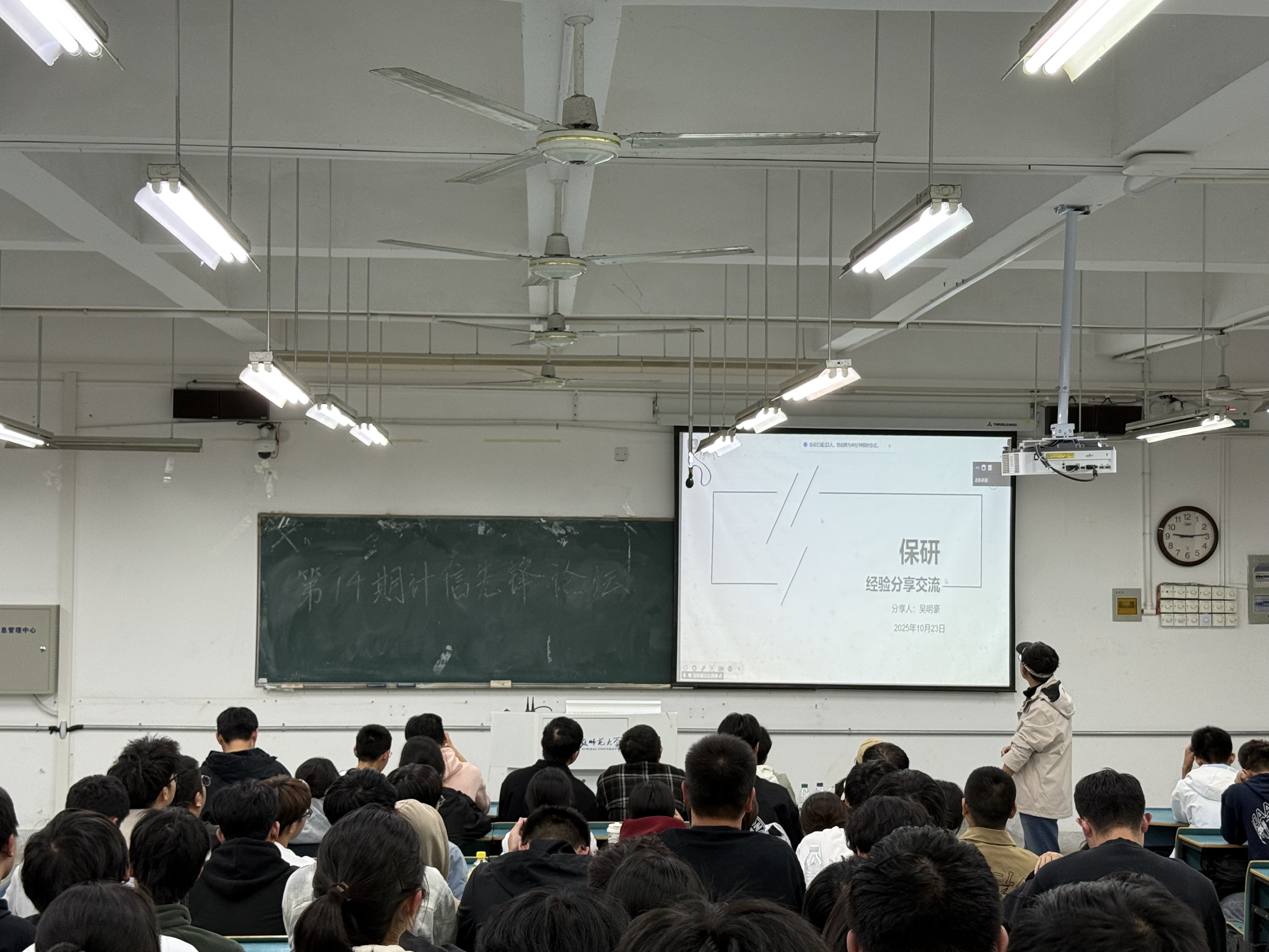 为帮助2025级物联网专业新生明确大学成长方向,快速掌握学业规划与升学核心方法,充分发挥优秀学长学姐的榜样引领作用,学院于10月23日晚在2070101教室成功举办“朋辈说”暨第14期计信先锋论坛经验交流会。本次活动特邀已成功推免至上海大学的2026届计算机相关专业学生陆心慧和推免至苏州大学的吴明豪,以及竞赛与科研成果突出的闫星星同学进行分享,2025级物联网专业全体新生参会。