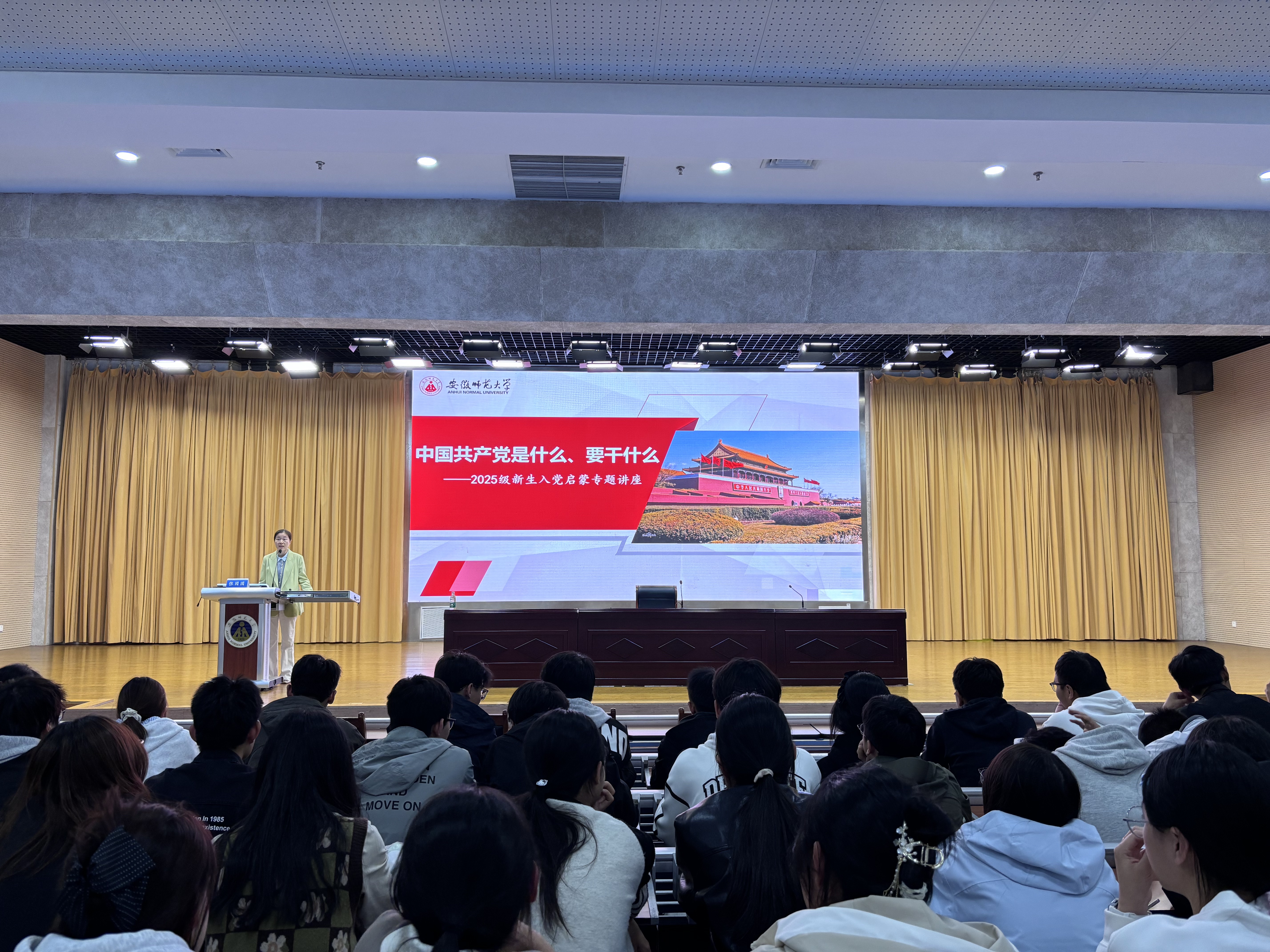 张园园书记以“中国共产党是什么,要干什么”为主题,为新生们带来了一场内容丰富、思想深刻的入党启蒙教育。张书记从中国共产党的光辉历程讲起,结合百年党史中的重大事件和英雄楷模事迹,生动阐述了党的性质、宗旨和奋斗目标。她强调,红色是中国共产党、中华人民共和国最鲜亮的底色,红色基因是共产党人永葆本色的生命密码,希望同学们能够深刻理解红色精神的时代内涵,自觉从党的百年奋斗历程中汲取智慧和力量。张书记还详细介绍了大学生入党的意义、基本条件以及发展党员的具体程序,鼓励同学们端正入党动机,积极追求进步,将个人理想融入党和国家事业之中,努力成长为德智体美劳全面发展的社会主义建设者和接班人。张书记的讲座逻辑清晰、语言生动、情感真挚,在现场新生中引起了热烈反响。