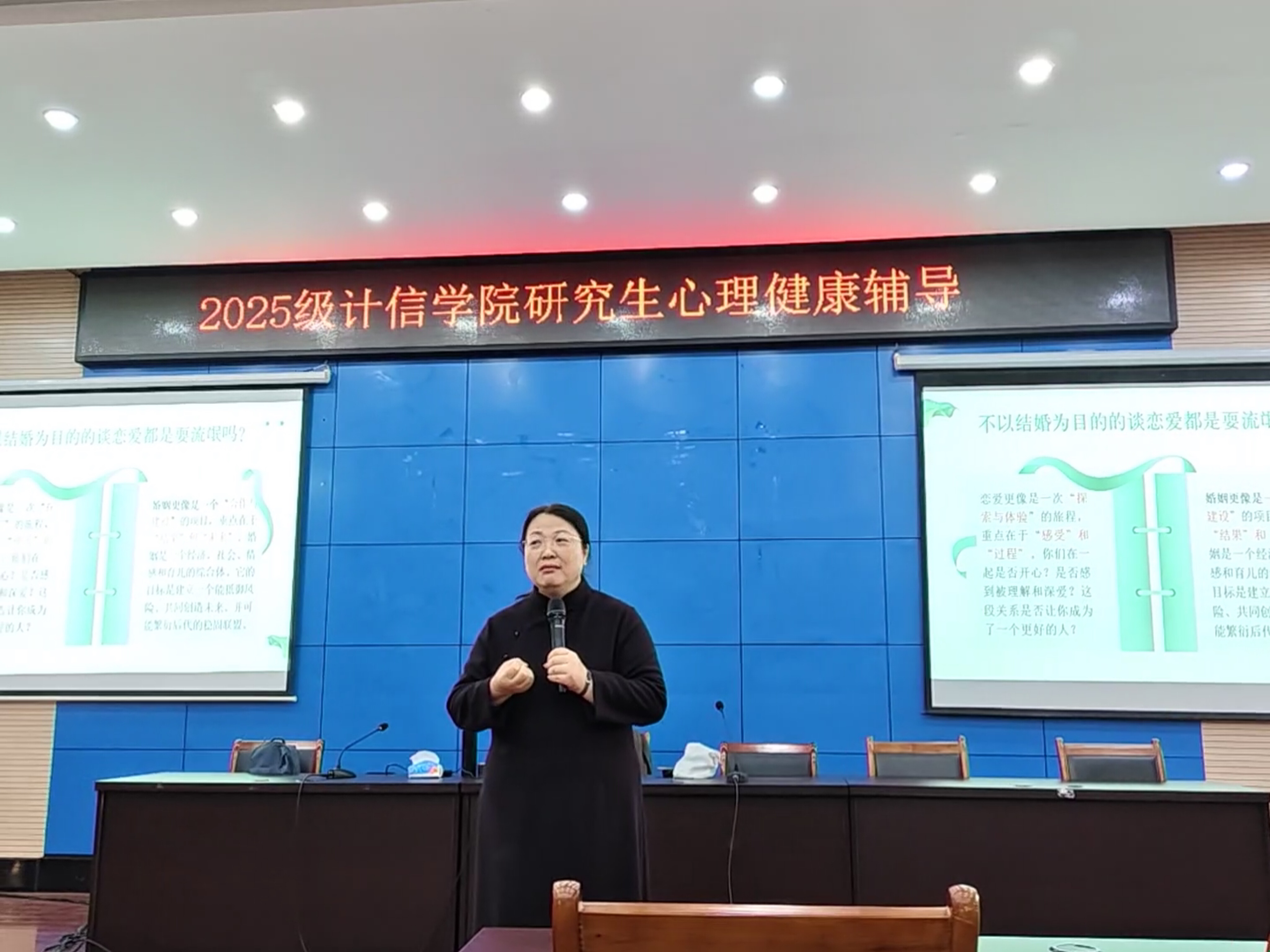 本网讯(计信学院 娄立昕 詹越)为加强学生心理健康,促进学生全面成长,12月5日下午,计信学院在学术报告厅第三会议室举行研究生心理健康辅导讲座。本次讲座特邀教育科学学院副教授丁园园担任主讲人。