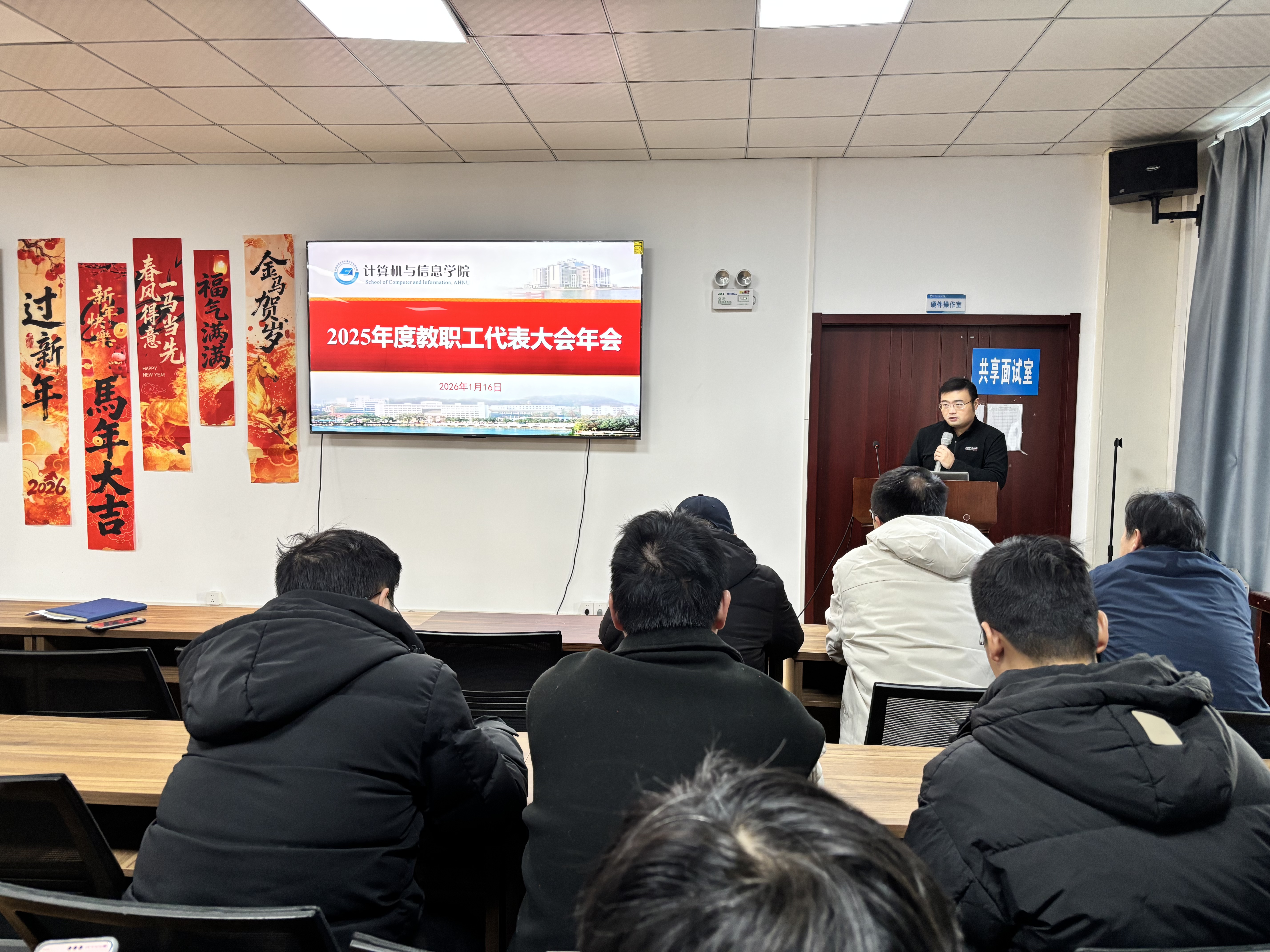 1月16日上午,计信学院在学苑南楼1号楼双创中心召开2025年度教代会年会暨教职工表彰大会。大会由学院党委书记张园园主持。