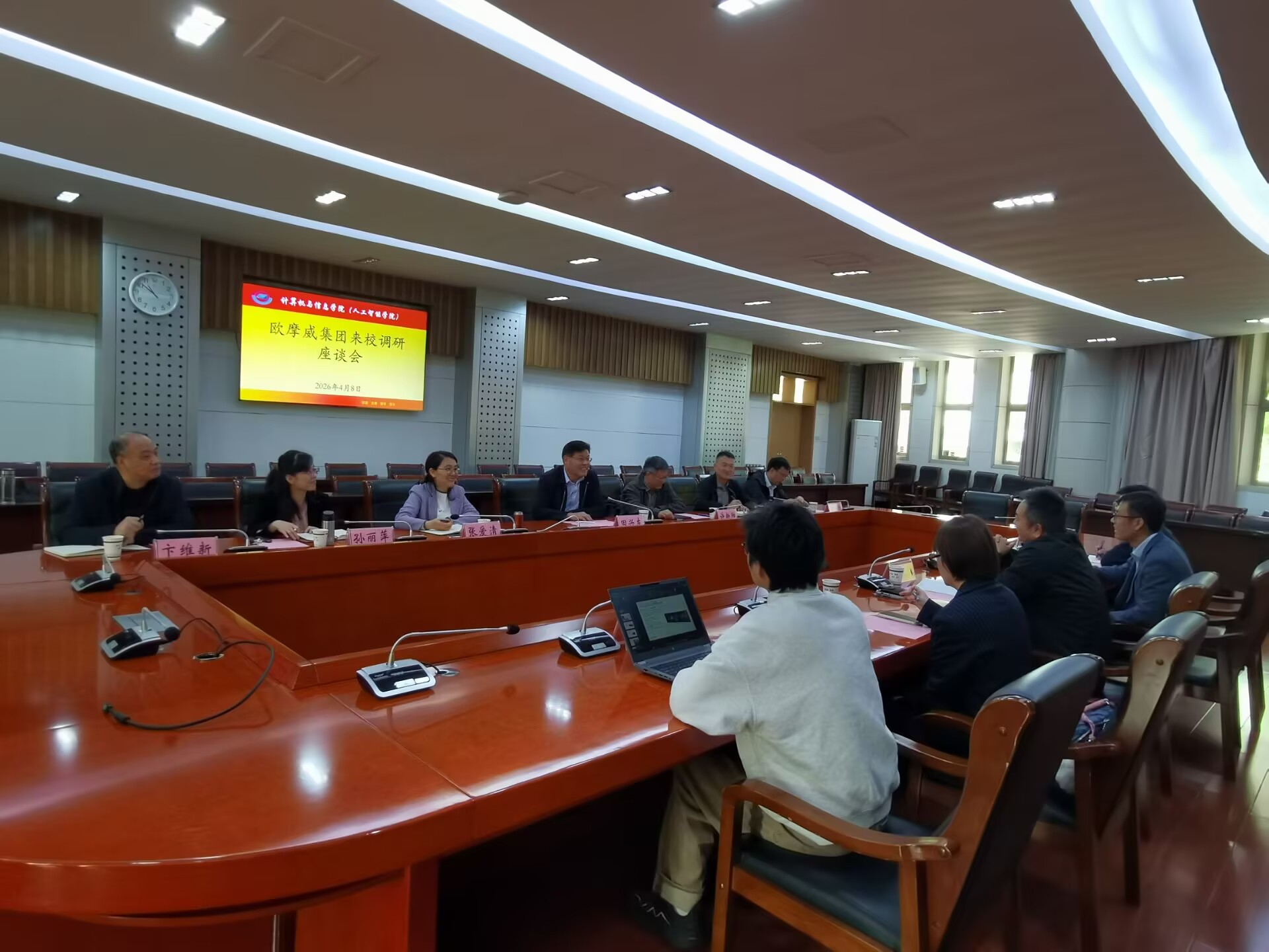 4月8日上午,欧摩威集团中国区副总裁樊永刚一行来校开展调研座谈,校党委常委、副校长田兴友主持座谈会,欧摩威集团相关部门负责人,学校科研部、发展规划部、计算机与信息学院(人工智能学院)有关同志参加座谈。