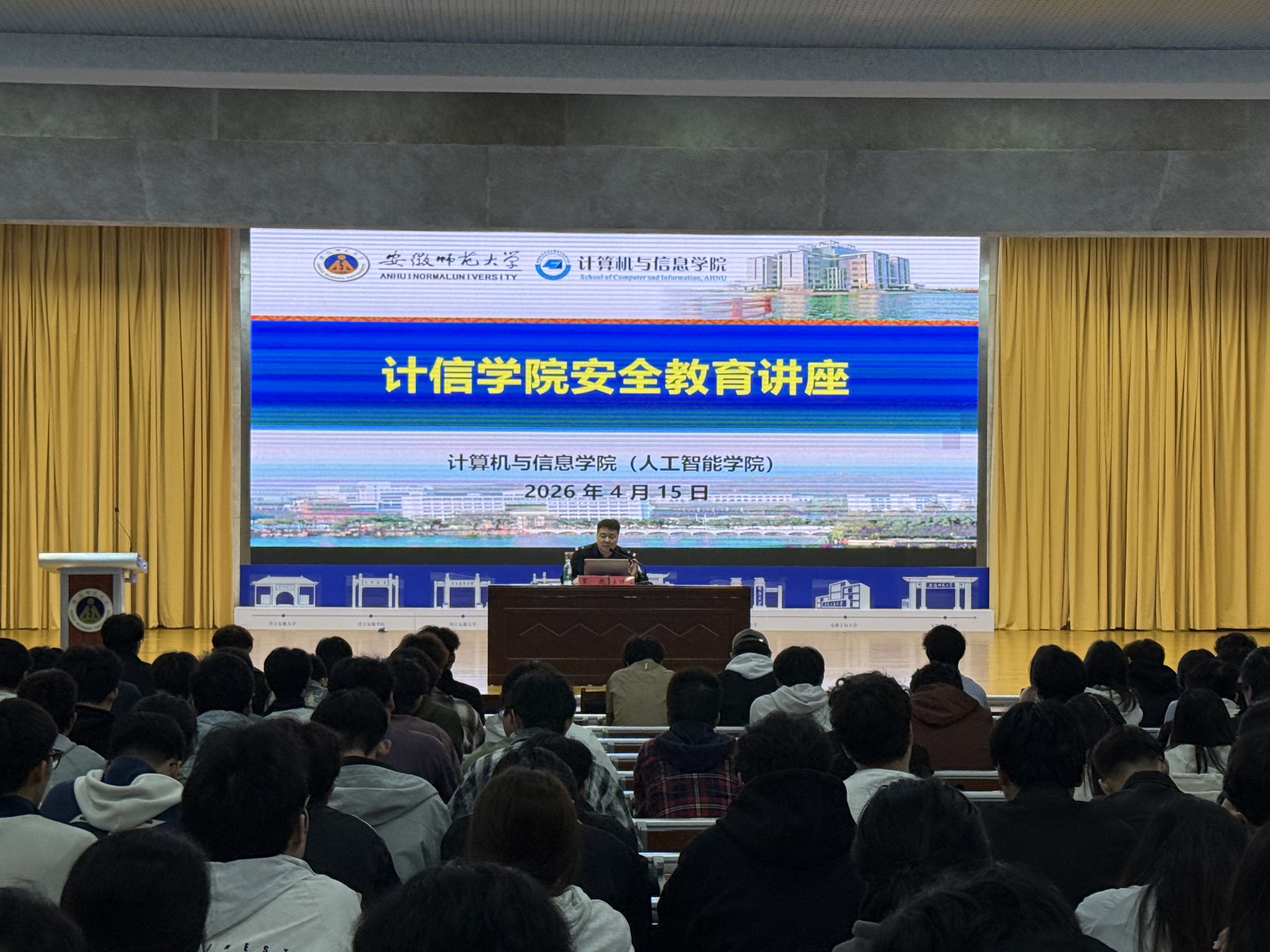 为进一步增强学生安全防范意识,筑牢校园安全防线,4月15日,计算机与信息学院在理科实训大楼报告厅举办“守护青春,远离陷阱”安全教育专题讲座。芜湖市公安局澛港派出所副所长罗胤应邀主讲,学院2023级全体本科生参加,讲座由辅导员姚良飞主持。