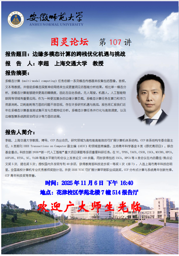 【学术预告】计信学院图灵论坛第107讲:边缘多模态计算的跨栈优化机遇与挑战