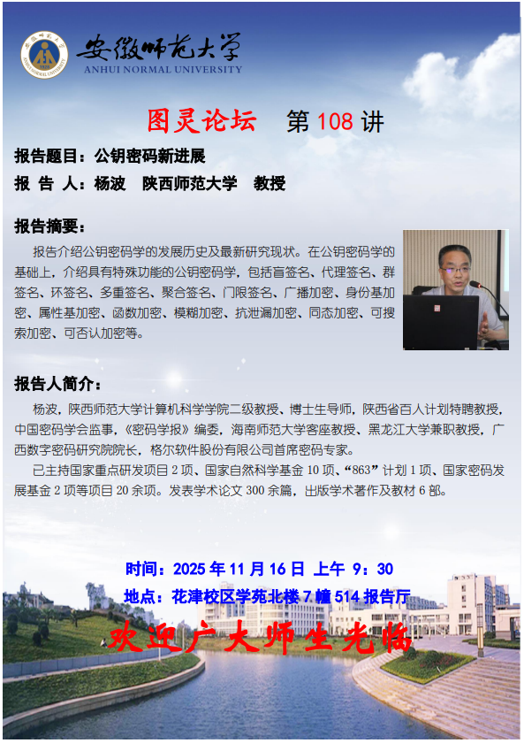 【学术预告】计信学院图灵论坛第108讲:公钥密码新进展
