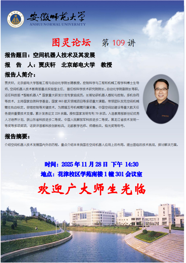 【学术预告】计信学院图灵论坛第109讲:空间机器人技术及其发展