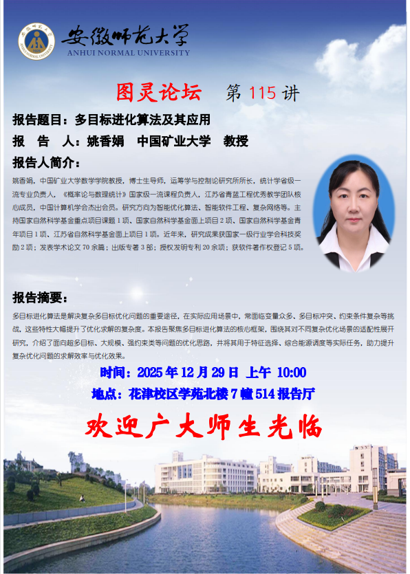 【学术预告】计信学院图灵论坛第115讲:多目标进化算法及其应用