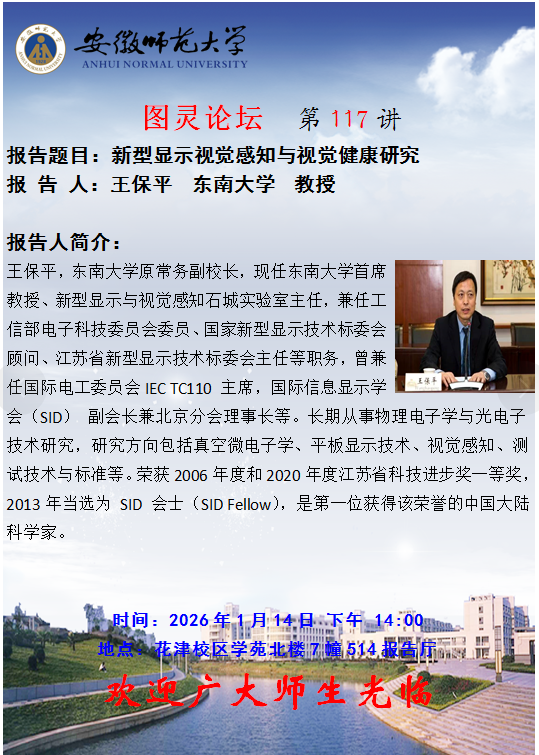【学术预告】计信学院图灵论坛第117讲:新型显示视觉感知与视觉健康研究